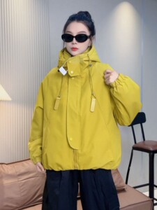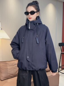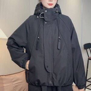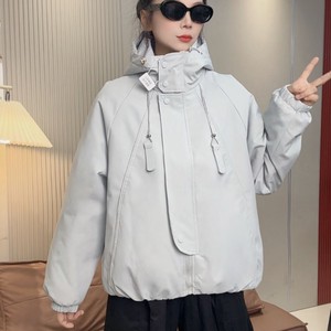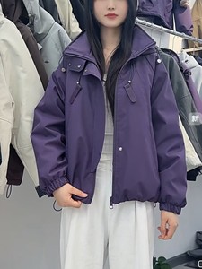 休闲冲锋衣二棉外套欧货2025短款秋冬宽松新款连帽夹克风衣派克服