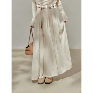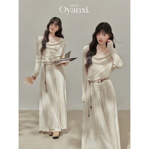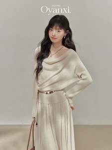 欧阳喜《纽约美术生.》长袖荡领针织上衣女秋季高腰半身裙套装