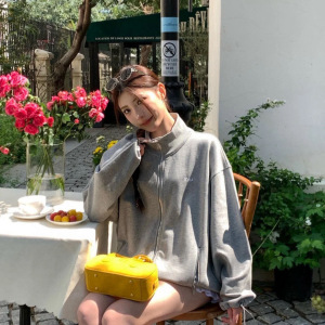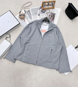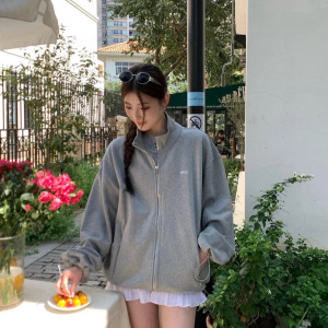 2025早秋新款南油miu慵懒风百搭拉链字母刺绣半高领长袖针织开衫