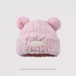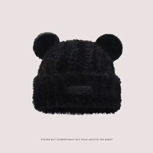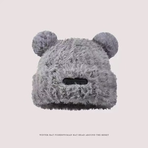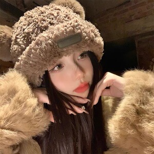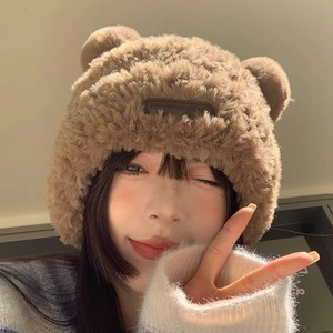 可爱小熊毛线帽女秋冬季韩版显脸小保暖针织帽大头围护耳毛绒帽子
