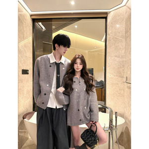 2025情侣装秋季男女宽松针织开衫毛衣外套#