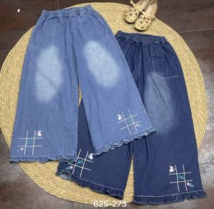 825273秋季女装新款森女系松紧腰刺绣花朵宽松牛仔裤休闲裤九分裤