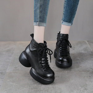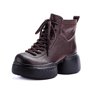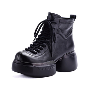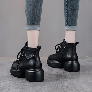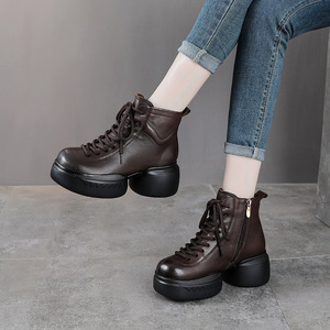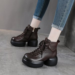 秋冬新款头层牛皮单靴粗跟厚底短靴棉靴高级感靴子真皮女士马丁靴