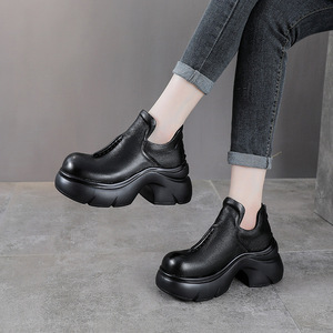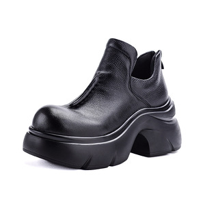 秋冬新款真皮低帮短靴女英伦风手工头层牛皮靴子厚底松糕丑萌女鞋