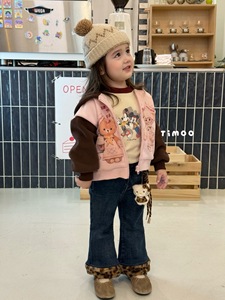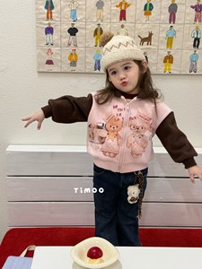 儿童加厚保暖外套2025冬季新款女童宝宝连帽开衫秋冬洋气印花上衣