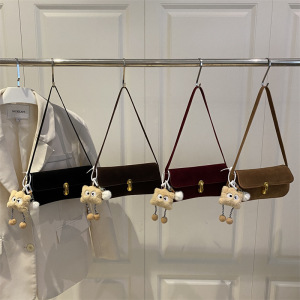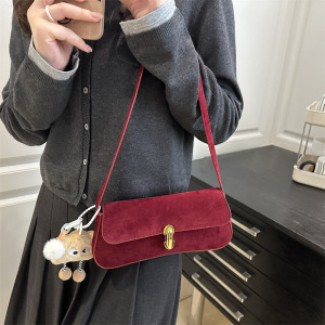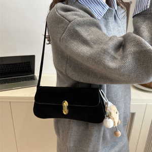小众腋下包包女2025新款气质女包时尚复古鹿皮绒单肩包锁扣小方包