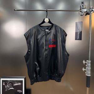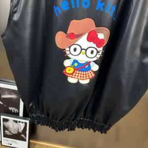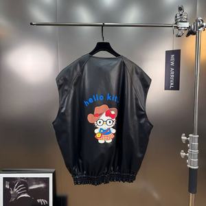 2025年秋季领无袖卡通字母猫咪图案廓形PU皮减龄少女风马甲