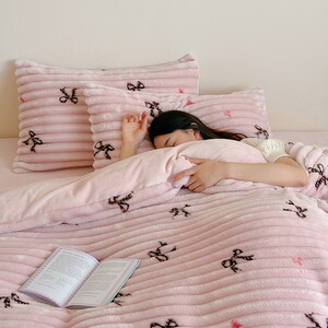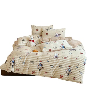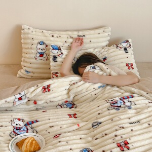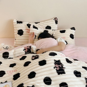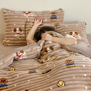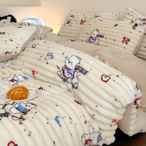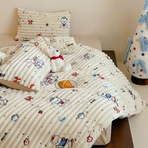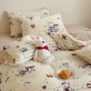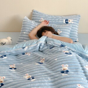 奶油ins风秋冬四件套卡通西高地抽条兔兔绒保暖三件套牛奶绒被套2
