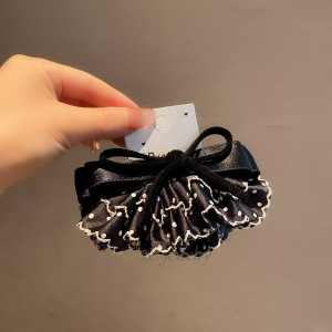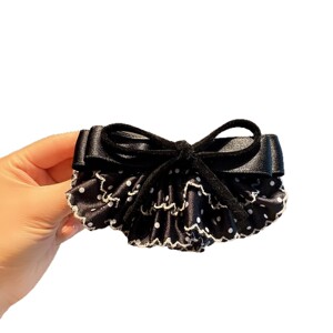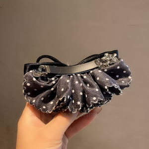 【实拍】韩版精致小巧波点蝴蝶结弹夹女时尚氛围感后脑勺顶夹发饰