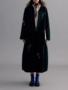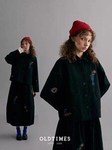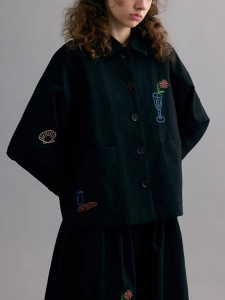 叙旧oldtimes 刺绣100肌理棉黑色休闲秋季外套【织梦物语】W5812