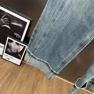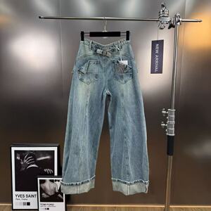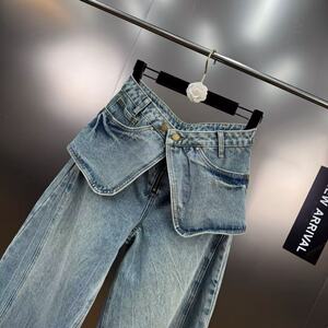 2025年秋季口袋腰围拼接挽裤脚设计假两件辣妹宽腿牛仔长裤