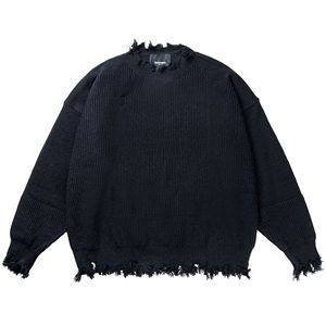 2025秋冬新品美式街头复古慵懒风设计感破坏磨破宽松毛衣