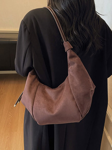 简约复古麂皮绒包包女2025新款休闲百搭斜挎包通勤百搭单肩腋下包