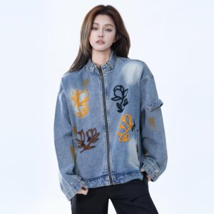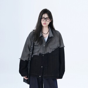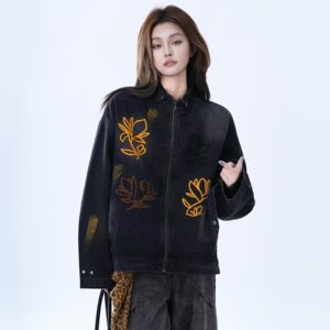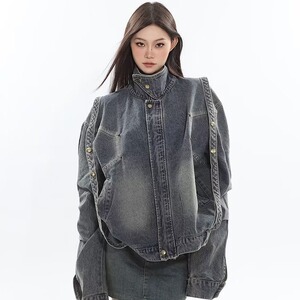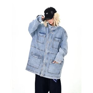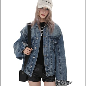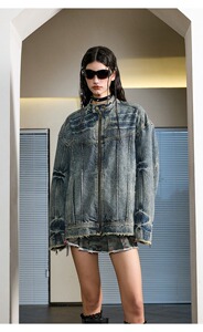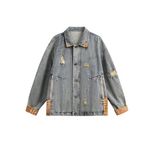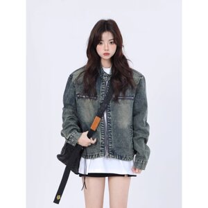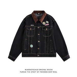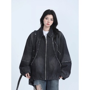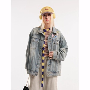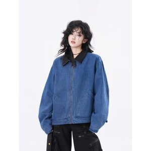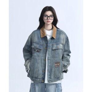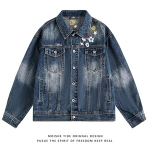 2025春秋新款美式复古牛仔外套男女机车潮牌翻领夹克情侣宽松上衣