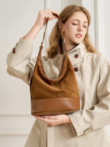 【宋佳同款】大容量上班通勤包小众轻奢高级感头层牛皮新款水桶包