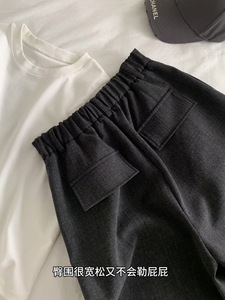 CHAO级推荐!夏风微澜~韩系黑色休闲七分裤女松紧腰腰直筒西装裤