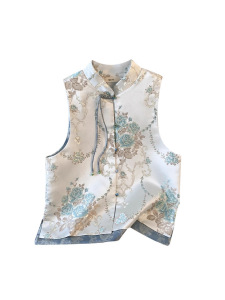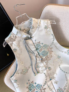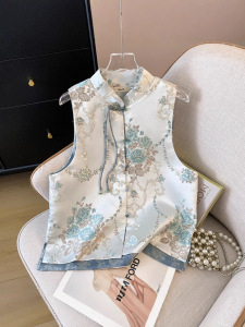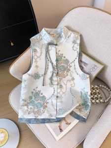 提花扣新民族马甲国风马秋夏开衫上衣女中式夹外穿女盘背心风夏款