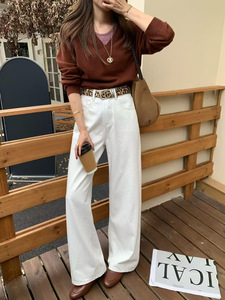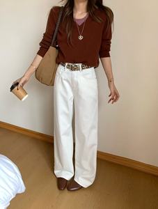 秋上新TOP欧制广州十三行简约百搭阔腿裤牛仔裤(配腰带)61636米白