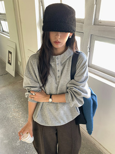 黄峥慵懒印花连帽长袖卫衣女2025秋冬韩版宽松套头上衣外套530920