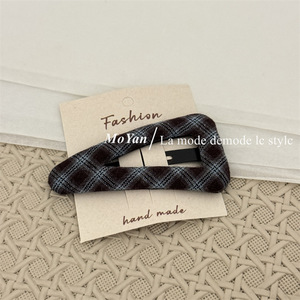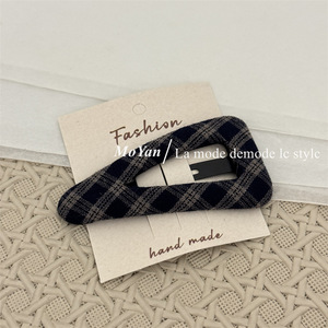 韩版复古格纹掰掰夹小众侧边三角刘海夹高品质布艺bb夹碎发夹发卡