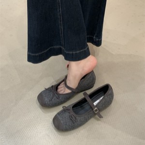 内增高小香风灰色勃肯玛丽珍单鞋女2025春秋季配裙子芭蕾舞晚晚鞋