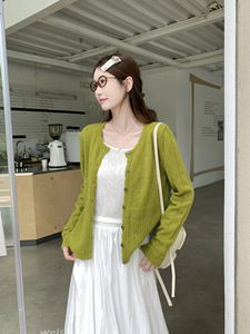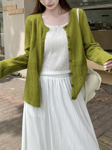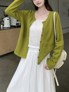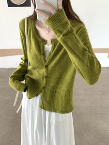 镂空毛衣小花边针织开衫外套女秋2025新款正肩上衣