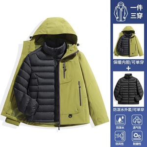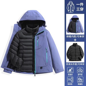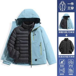 空山雨羽绒冲锋衣女户外防风防水保暖三合一羽绒内胆外套男登山服