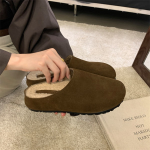 厚底真皮秋冬季加绒勃肯鞋女鞋子2025新款复古半托毛毛鞋博肯棉鞋
