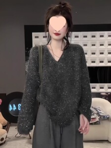 2025新款设计感秋装上衣重工细闪亮片毛衣女宽松外搭女装针织衫