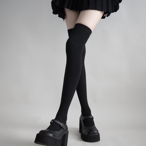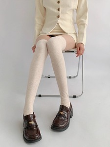 秋冬款棉质压力过膝袜搭小皮靴JK袜子女复古显瘦无骨高筒大腿女袜