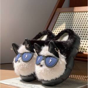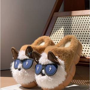可爱小狗棉拖鞋女款冬季情侣室内居家厚底防滑毛绒保暖包头拖鞋男