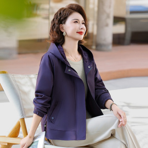 妈妈秋装2025新款时尚高贵风衣外套中老年女装50岁夹克衫连帽上衣
