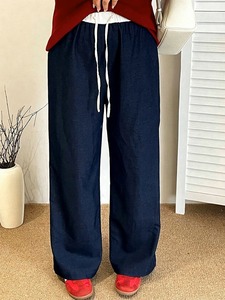 【包邮】大码女装松紧抽绳休闲裤女直筒裤2025秋胖mm宽松阔腿裤