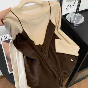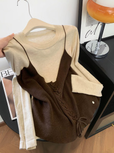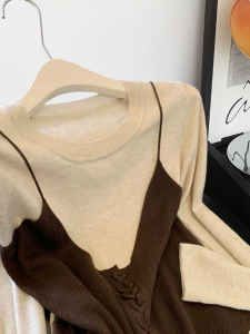 2025秋季新款女装韩系美拉德假两件女士针织衫气质长袖上衣A7570