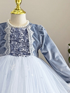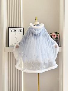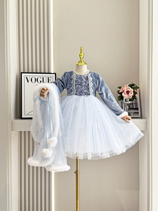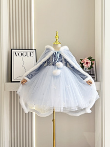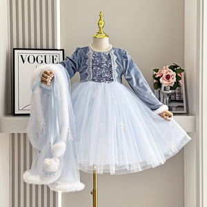 爱莎公主女童连衣裙秋冬网纱斗篷披肩冰雪奇缘生日礼服仙仙裙
