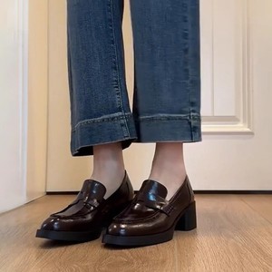 羊皮版~真皮复古粗跟通勤一脚蹬高跟乐福鞋女英伦风小皮鞋jk单鞋