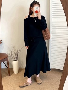 【包邮】大码设计感露肩上衣半裙针织套装2025秋胖mm宽松两件套