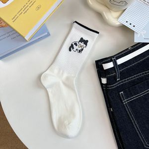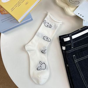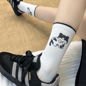 白色无骨袜子女纯棉中筒袜春秋季日系卡通猫咪堆堆袜可爱少女长袜