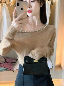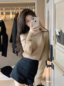 斜肩针织衫女小香风秋季薄款短款露肩时尚感百搭设计小众别致上衣