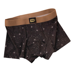 新款男士星空透气平角内裤男亮片玫瑰休闲纯棉中腰运动印花短裤衩