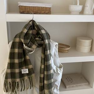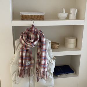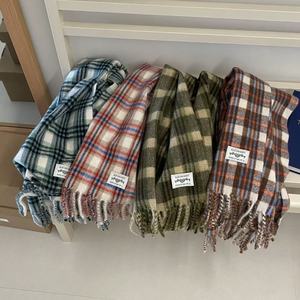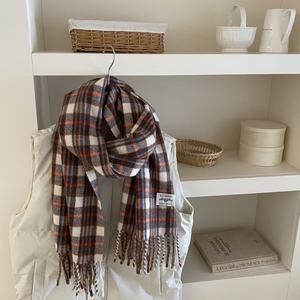 2025新款含羊毛格子围巾冬季保暖氛围感大披肩红色马海毛情侣围脖