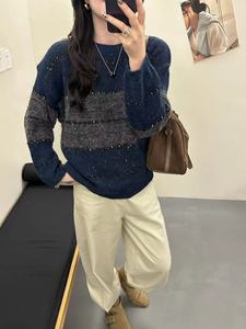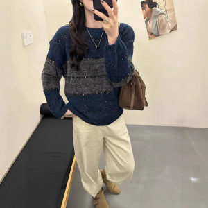 巨好看的韩系氛围感穿搭撞色针织衫女早秋宽松慵懒高级感毛衣上衣