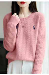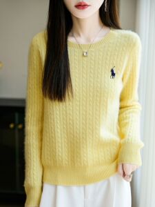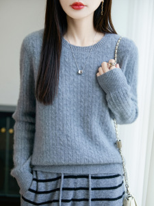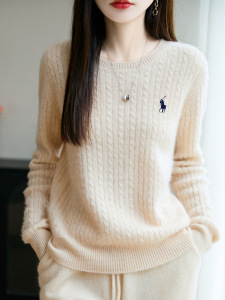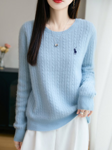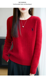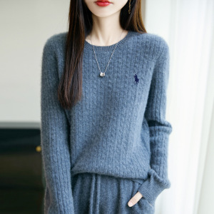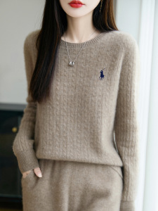 100%羊毛衫毛衣女秋冬新款圆领刺绣麻花针织衫长袖套头打底衫上衣