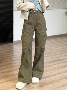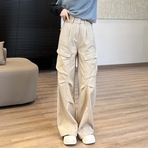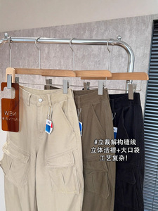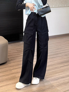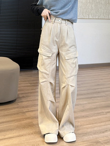 miu系工装牛仔机能裤!明星款休闲长裤口袋立裁港风阔腿裤女秋新