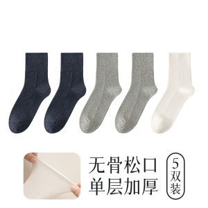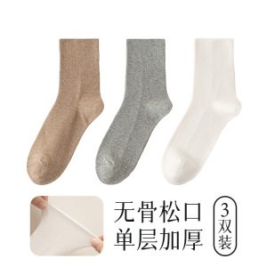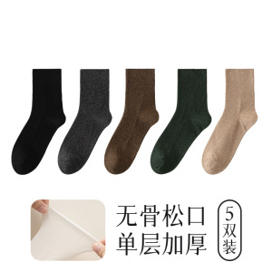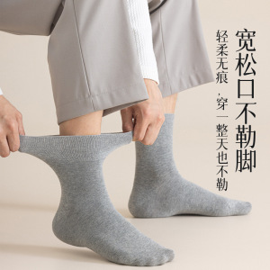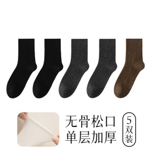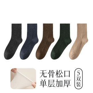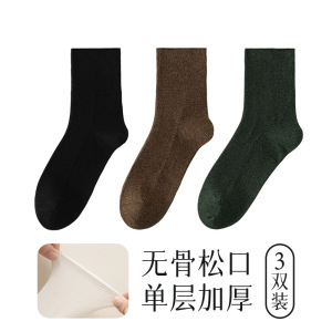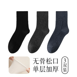 单层加厚45g全棉袜子男士秋冬新款棉感足保暖纯色宽松口不勒中筒