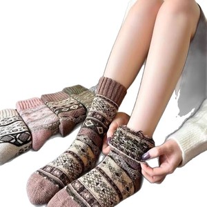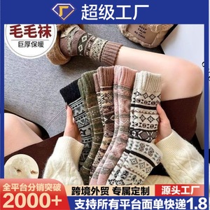 冬季羊毛袜子加厚款袜子袜子复古民族风情侣款东北保暖中筒毛圈袜