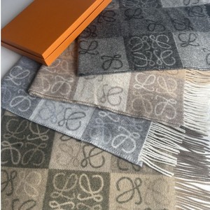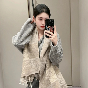 老花羊毛羊绒围巾女棋盘格秋冬季加厚保暖披肩经典提花流苏围巾