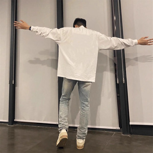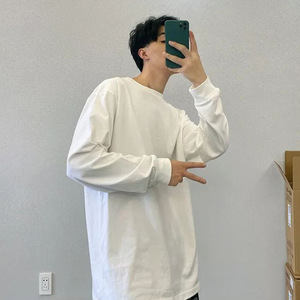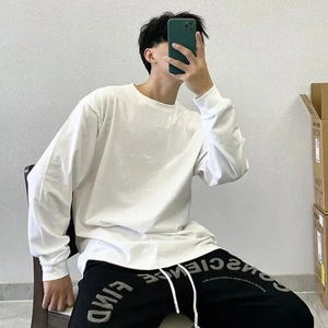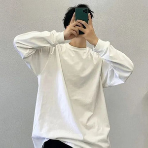 春秋冬季男士纯棉长袖T恤重磅内搭外穿小领口纯色潮牌休闲打底衫