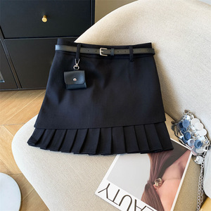十三行秋季款韩版设计感做旧高腰百褶短裙小众百搭a字显瘦半身裙