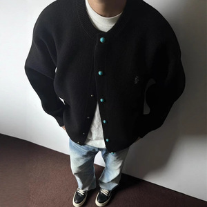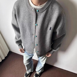重磅美式设计感针织外套男款秋冬高级感毛衣美式cleanfit开衫上衣